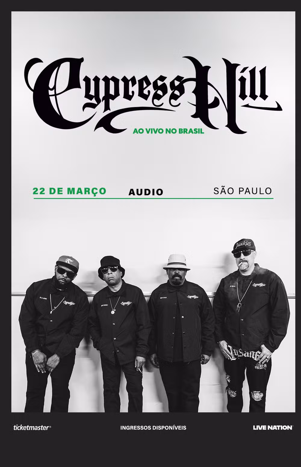 O show do **Cypress Hill** ocorrerá no dia 22 de março, a partir das 19h com abertura dos portões, e o espetáculo com início previsto para às 21h, na Audio, situada na Av. Francisco Matarazzo, 694, em Água Branca, São Paulo. Os ingressos estão disponíveis a partir de R$ 210 (meia-entrada para pista, lote 1).
