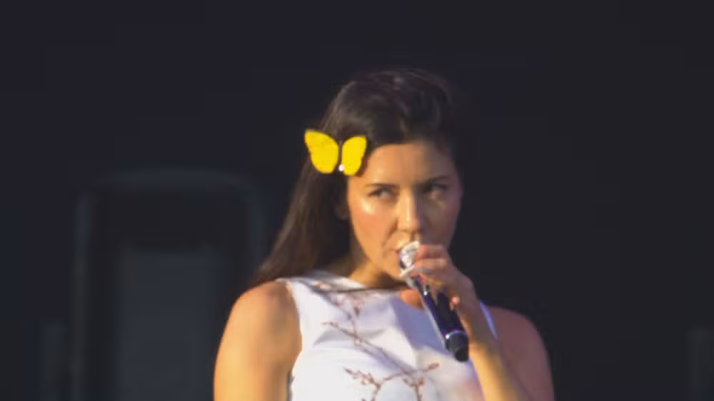 A cantora galesa Marina, conhecida anteriormente como Marina and the Diamonds, realizou seu terceiro show no Lollapalooza Brasil neste sábado (21), no palco principal do festival. Recebida por uma multidão animada, a artista entregou uma performance vibrante, com vocais e visuais que mantiveram a energia lá em cima.