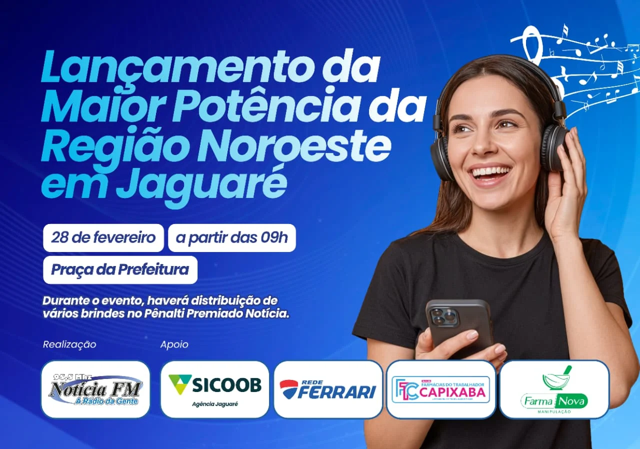 A cidade de Jaguaré se prepara para um evento marcante no próximo sábado, dia 28. A Rádio Notícia FM realizará o lançamento oficial da sua nova e poderosa estação transmissora, consolidando-se como a de maior potência em toda a Região Noroeste do Espírito Santo.