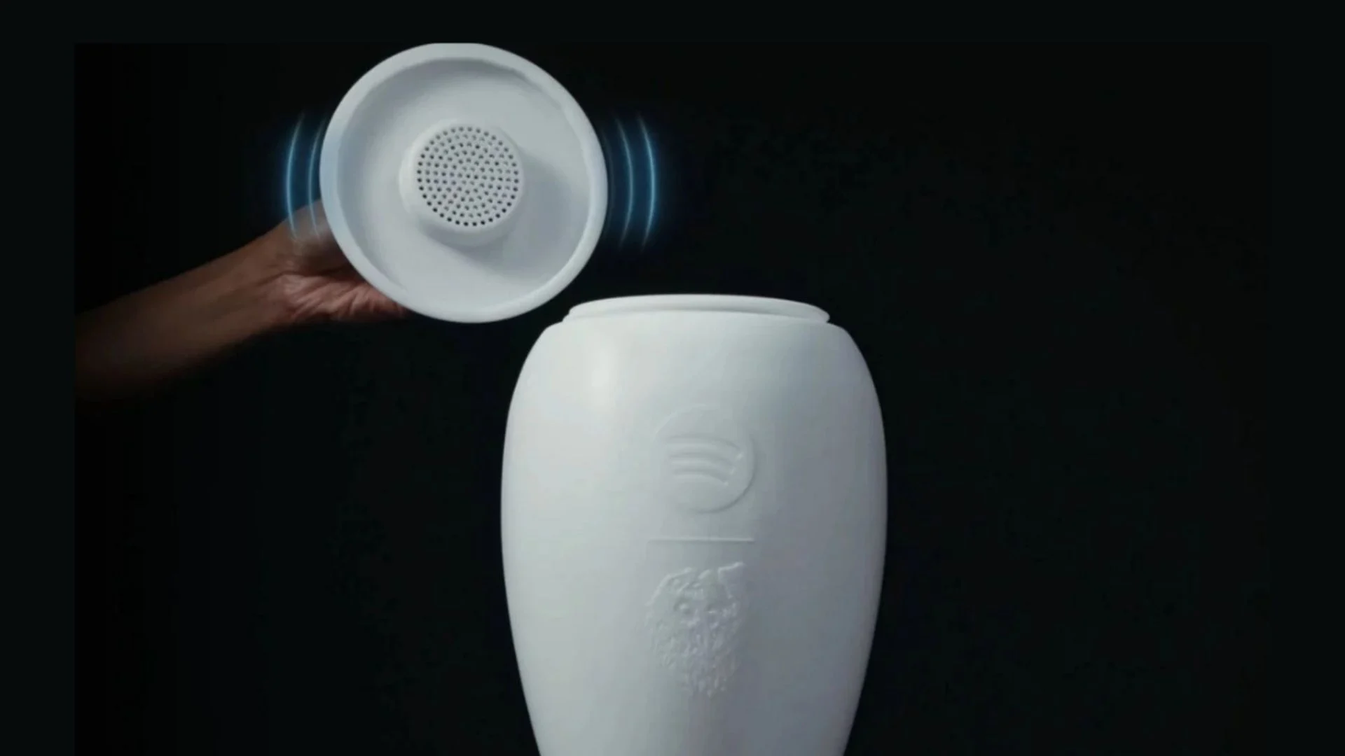 Esta colaboração inédita consiste em uma urna funerária equipada com um alto-falante Bluetooth embutido na tampa. O objetivo é permitir a reprodução de uma playlist personalizada para a pessoa falecida, diretamente da plataforma do Spotify, garantindo que a música continue a ecoar.
